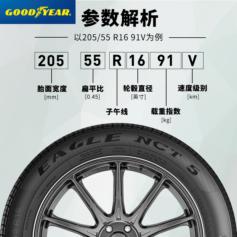 GOOD YEAR 固特异是来自美国的知名橡胶轮胎品牌。固特异“EAGLE NCT5”轮胎采用“静音胎面”技术,将轮胎接地产生的噪音降低。官方评价为:“EAGLE NCT5”轮胎是固特异有史以来最安静、最舒适的轿车轮胎,比较适合驾驶风格不是很激烈的私家车使用,在保证舒适静音的前提下,也有不错的操控体验。205/55R16的规格对于大多数家用车来说是比较适合的。