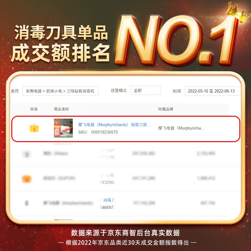 摩飞(Morphy Richards)这款型号为mr1001的刀具砧板消毒机,消毒进阶,双重杀菌,灭杀率达99.9%。热风烘干,专用刀板,标配自带三板三刀,可收纳三板四刀十筷,麦秸秆砧板耐滑不起屑。插电使用告别繁琐充电。生熟将康分类,整机收纳,内置筷筒。