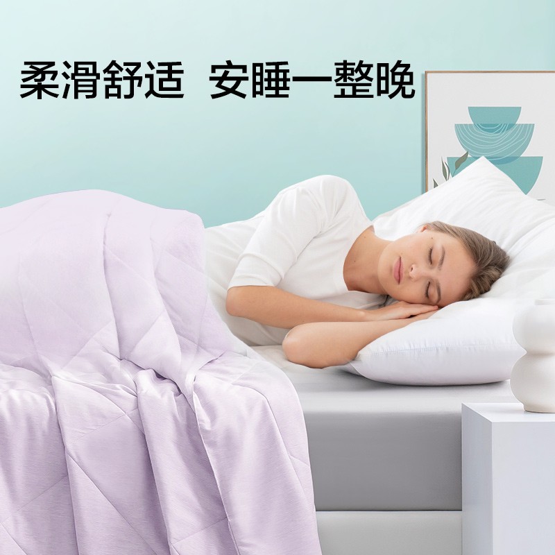 超细纤维制作的羽丝被,轻薄蓬松,手感细腻,采用绗缝花型设计,可机洗,打理轻松。
