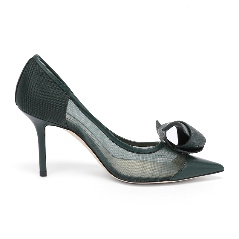 JIMMY CHOO 周仰杰 LANI 85系列 蝴蝶结高跟鞋 QKX 221 ,织物鞋面,羊皮鞋底,LOGO压纹蝴蝶结,性感精致。