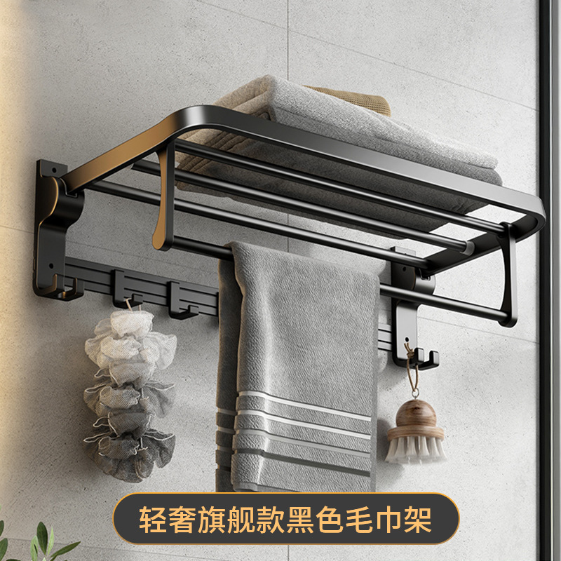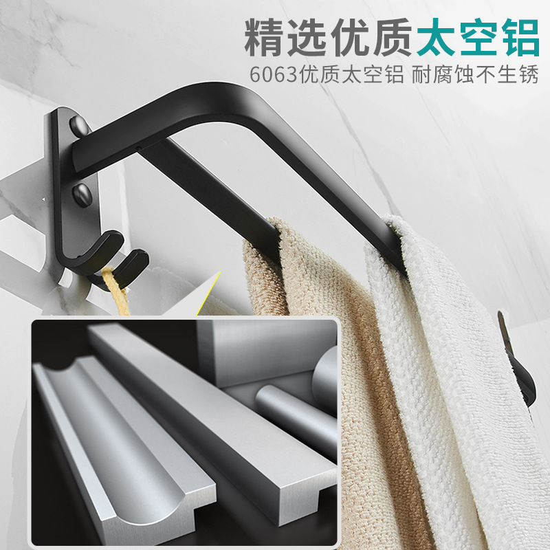精选6063优质太空铝,耐腐蚀不生锈,防水防潮,承重力强;可以打孔/免打孔2种安装方式,结实耐用不掉落;上面一层可折叠,设计精美;两侧挂钩可收纳小物件。