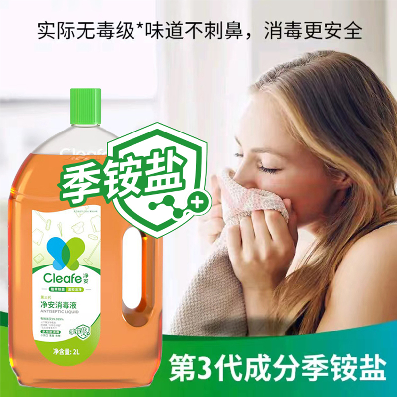 当前的位置: 首页 > 今日值得买 > 净安季铵盐消毒液家用2L手部皮肤地板玩具宠物用品衣物等多用途消毒水松木清香不刺鼻杀菌率99.999%
