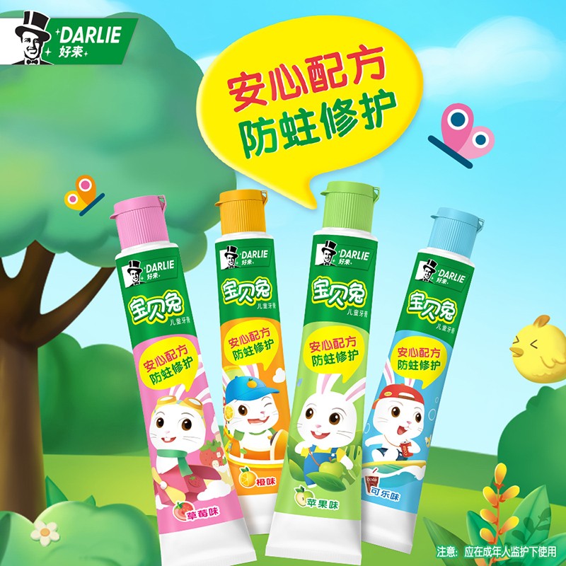 当前的位置: 首页 > 今日值得买 > DARLIE 好来(原黑人)宝贝兔儿童牙膏 宝宝2-12岁含氟果味套装官方旗舰2支装 4支装(共160g)