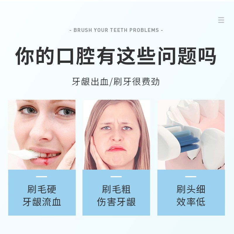 软毛护龈,洁净安心,排水设计,有助于疏水速干,干净卫生。深入齿缝牙龈沟。双色的搭配设计,能够做情侣牙刷配,色彩低调优雅。