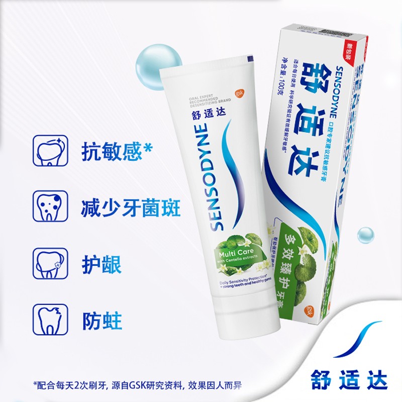 舒适达是专业抗敏感牙膏品牌,也是众多口腔专家推荐的牙膏品牌,致力于研究有效缓解牙齿敏感。这款蕴含天然积草雪精粹,清洁焕新牙齿,多效保护口腔健康。100g的规格足够日常使用。