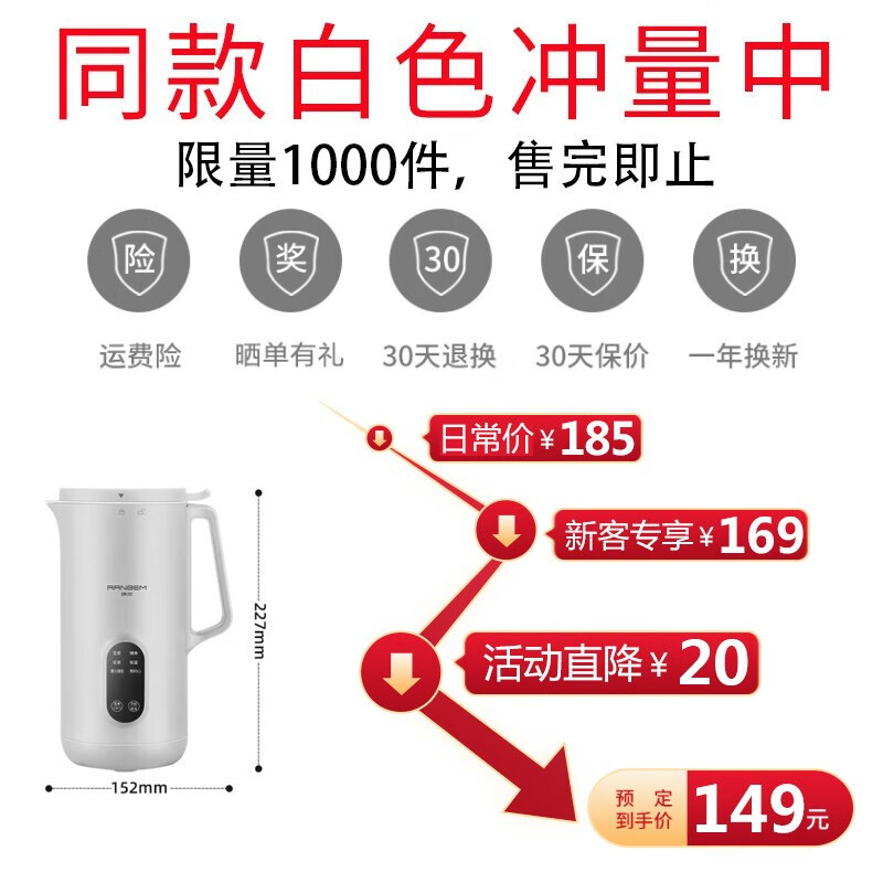 瑞本破壁机升级了6片刀叶,出汁更加细腻,免过滤,容量350ML-600ML,满足1-3人使用,支持预约定时,冷热双用,一年四季都很实用。