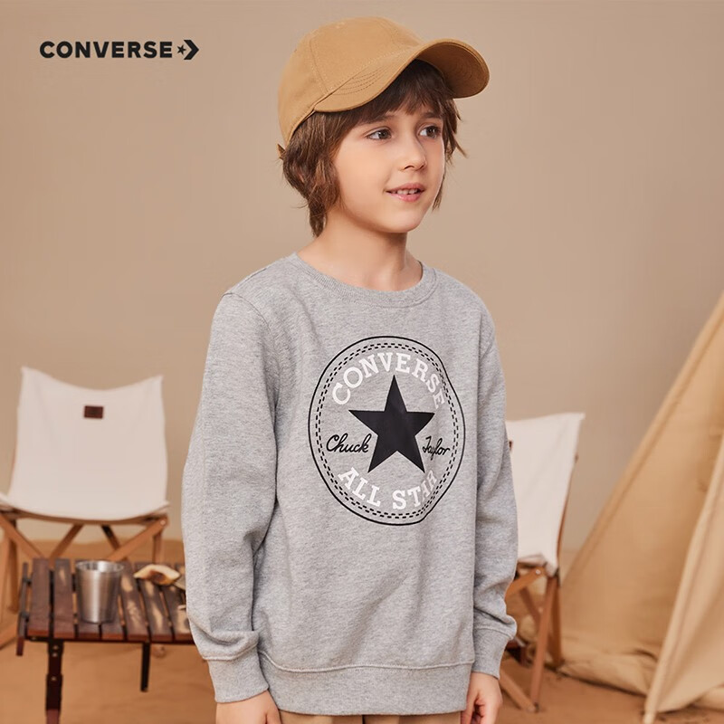 这款CONVERSE 男女童圆领套头衫卫衣,经典LOGO图案,醒目吸睛,彰显品牌质感。罗纹圆领套头设计,易穿好脱,版型简约大方,舒适好搭。多款多色可选,110cm-160cm尺码可选。