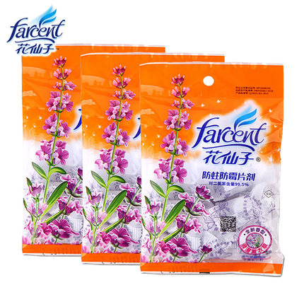 花仙子樟脑丸3包,衣柜防蛀防霉片剂,家用除蟑螂防虫防蛀防潮,薰衣草清香,独立包装方便不沾手。