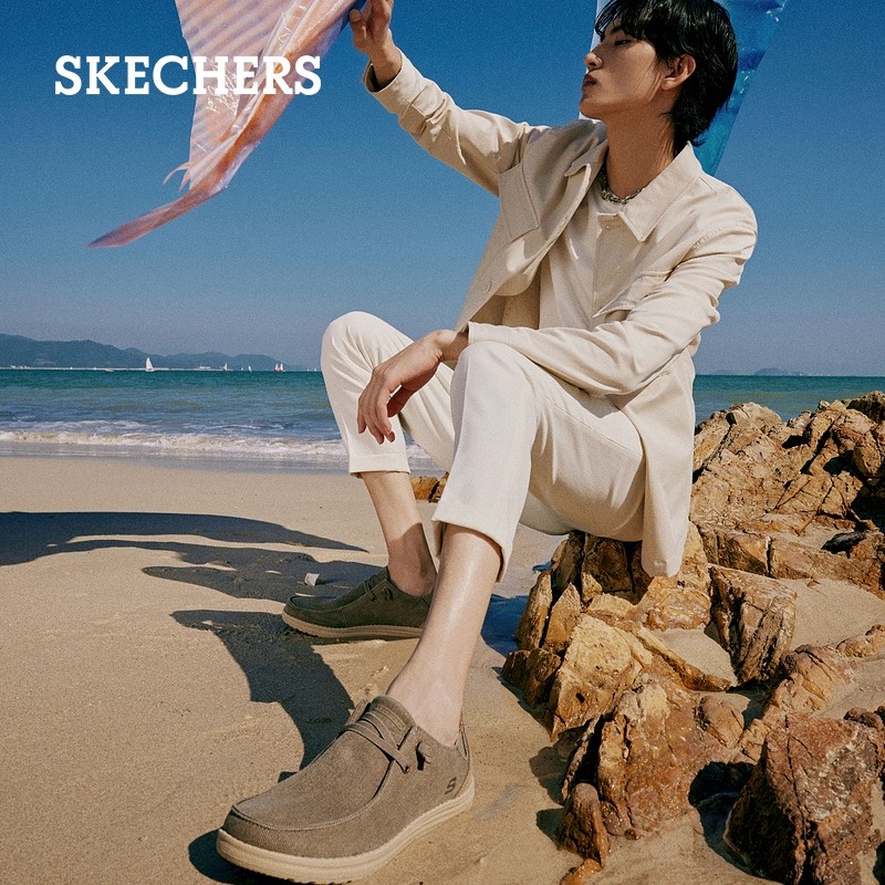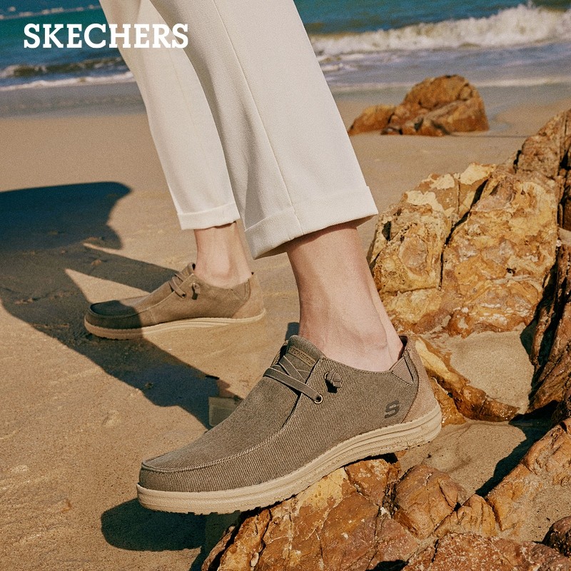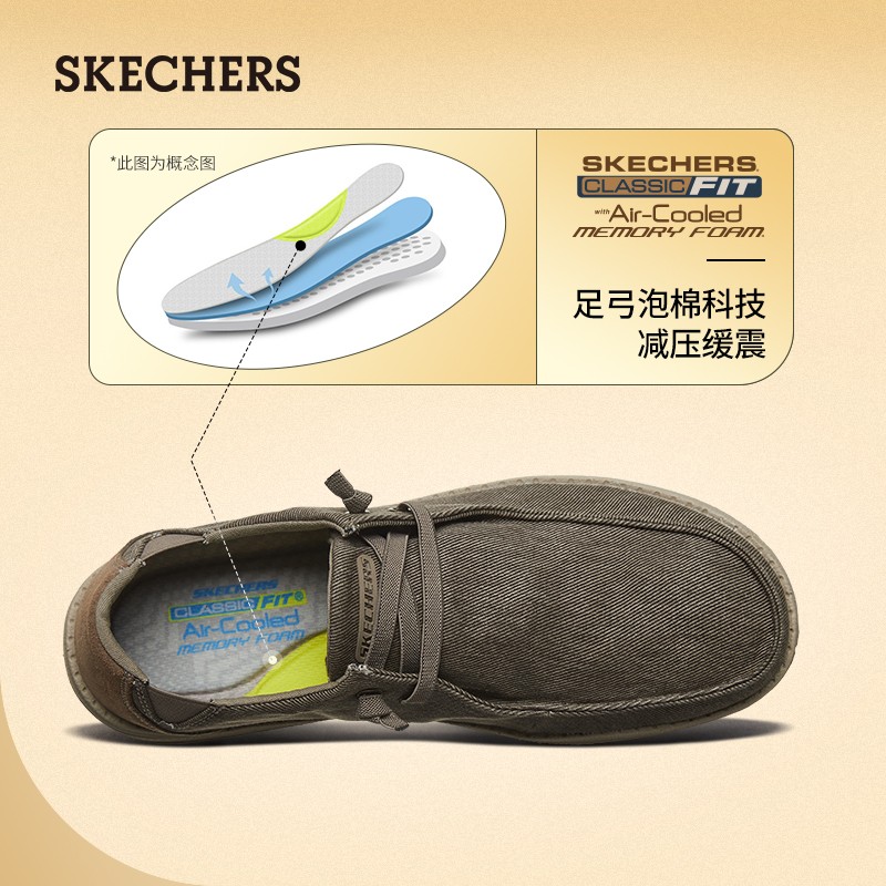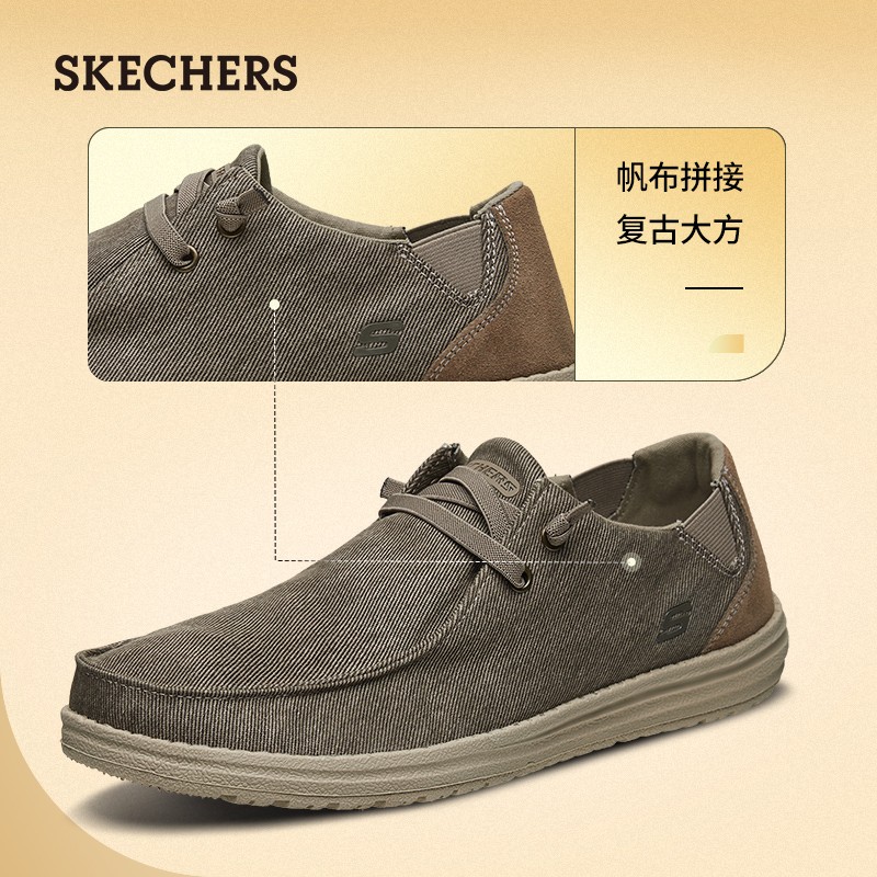 SKECHERS 斯凯奇 66387 男士一脚蹬休闲鞋,简单帆布鞋面,拼接反皮毛材质;记忆鞋垫,柔软回弹;舒适透气,脚部干爽,身心更轻畅;MELSON EVA大底,个性底纹设计,肆意行走。