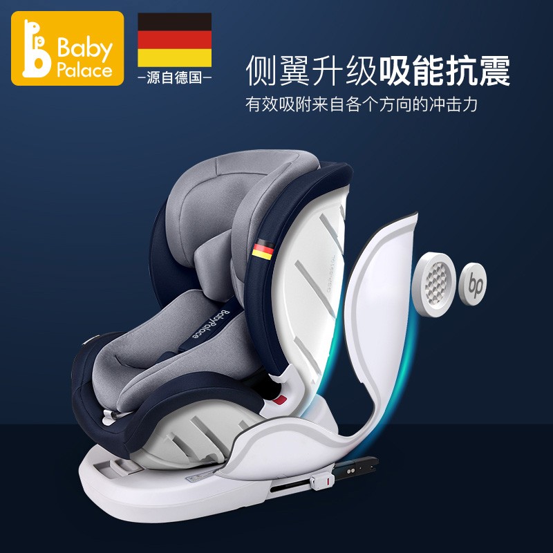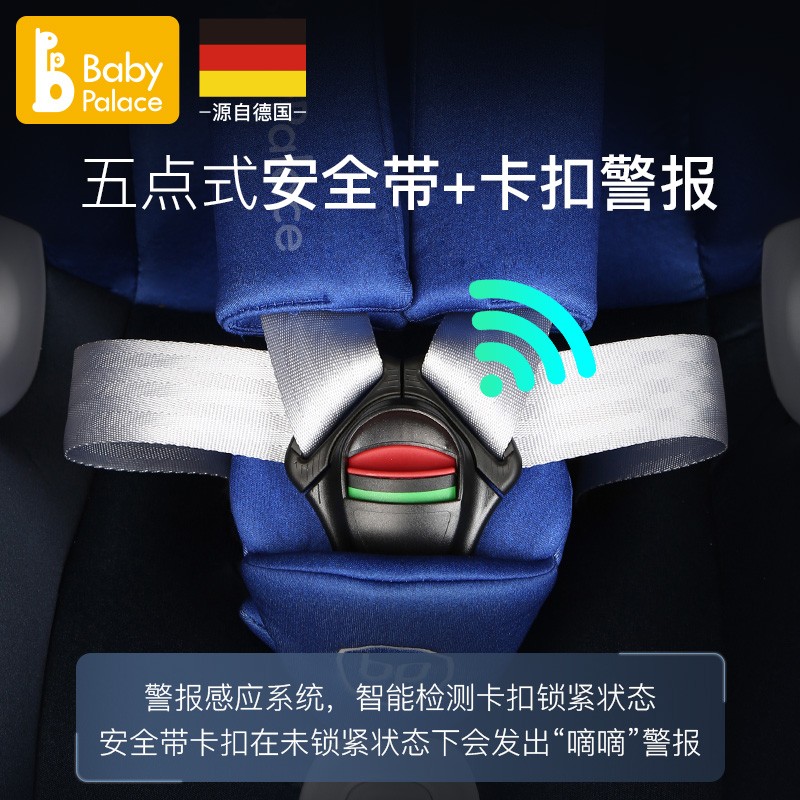 宝贝宫殿领航者LING汽车儿童安全座椅采用全注塑椅身,高密度分子颗粒,座椅韧性强度大幅度提升,椅身整体采用C型太空睡眠舱设计,C型太空舱可托住宝宝脊椎,符合人体工程学,头部U型加深头枕可有效保护宝宝头部及颈椎,同时也给予头部充足的活动空间。ISOFIX接口+LATCH接口+安全带三重固定,稳固如一,安装便捷,座椅支持反向安装,可抑制脊椎甩移错位,减少头部伤害。警报感应系统可智能检测卡扣锁紧状态,安全带卡扣在未锁紧状态下会发出“嘀嘀”警报,一举一动,尽在掌控。