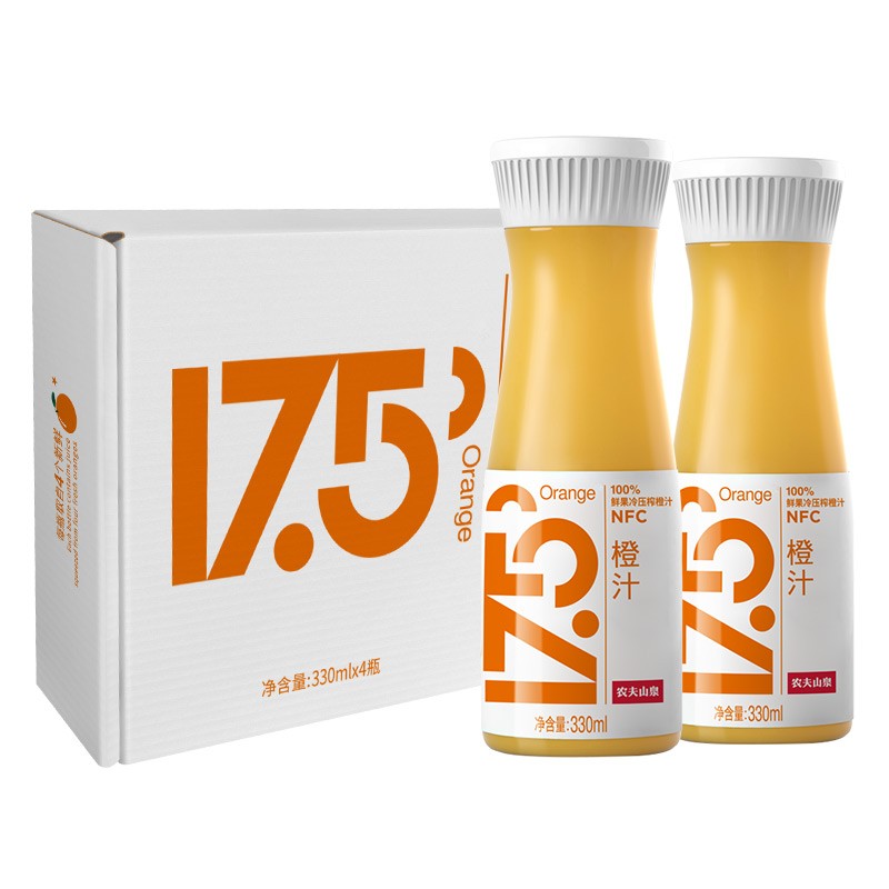 更多农夫山泉17.5°NFC鲜橙汁 100%果汁 礼盒装330ml*4瓶