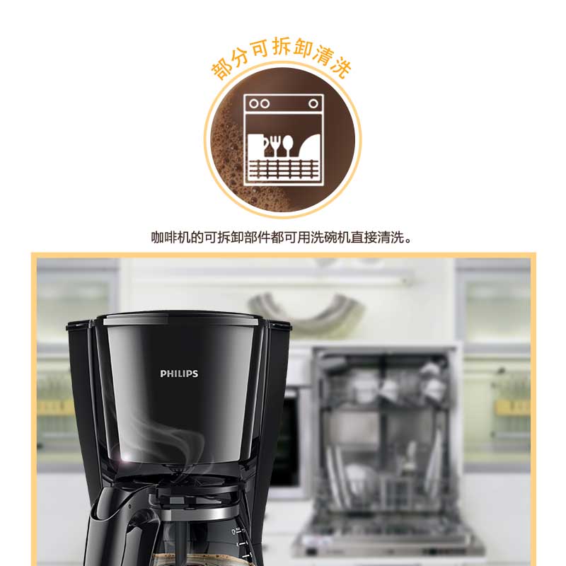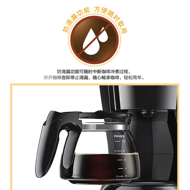 这款PHILIPS 飞利浦 HD7432/20 滴漏式咖啡壶,采用漩涡技术,即在烹煮过程中自动搅拌咖啡,另咖啡均匀受热,口感更好。支持30min自动关机,设有防滴漏功能,即开咖啡壶即停止滴漏。咖啡机可拆卸部分可直接用洗碗机清洗,机身设有LED电源指示灯。容量0.9L,功率750W。