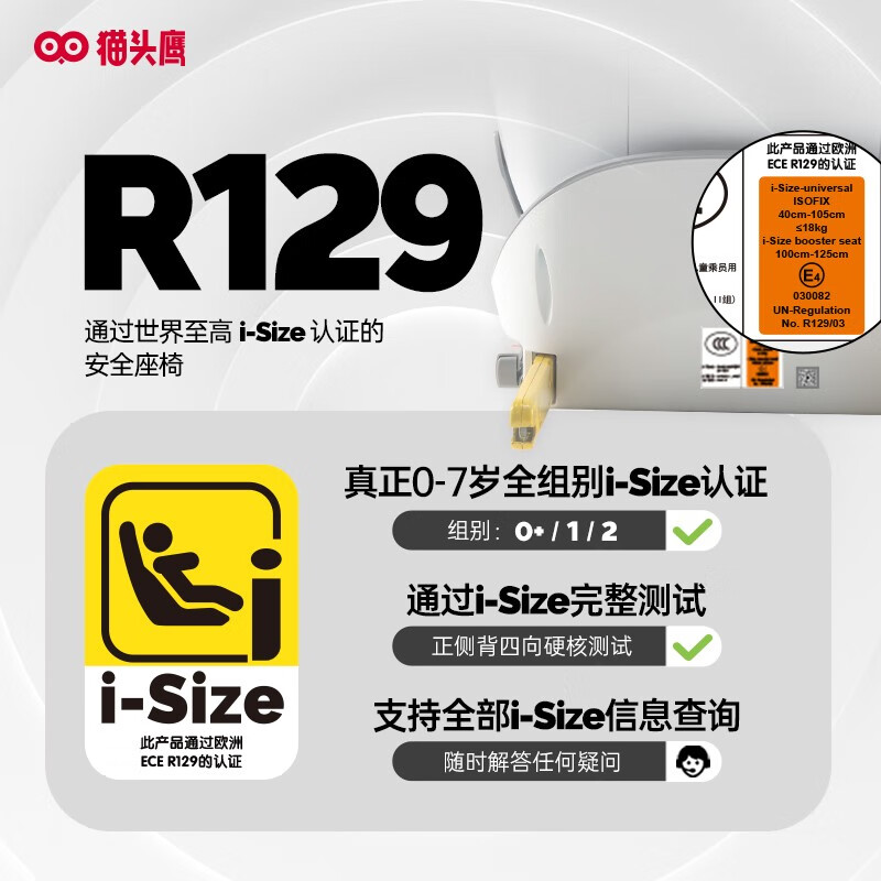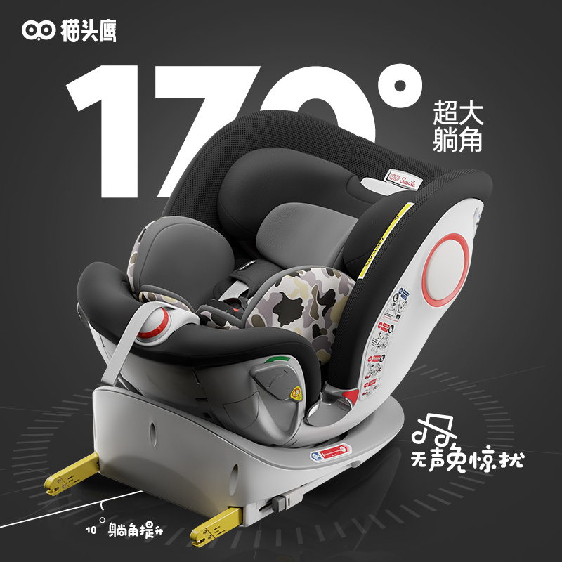 猫头鹰M173A儿童安全座椅通过I-Size认证,增加了侧面及头颈测试指标,ISOFIX+LATCH安装方式,牢固可靠。座椅可顺逆双向旋转,任一档位均可全角度旋转,解锁和旋转一键集成,单手即可完成座椅旋转,底盘降噪垫片可降低旋转噪音。170度超大躺角,调节平顺无顿挫。