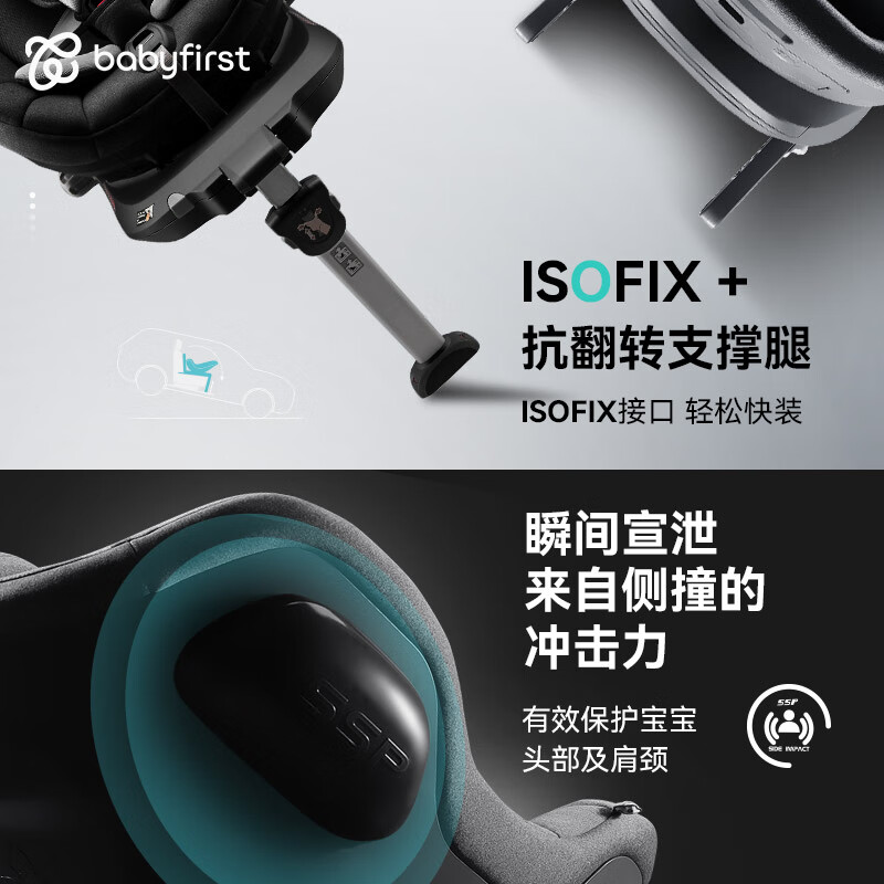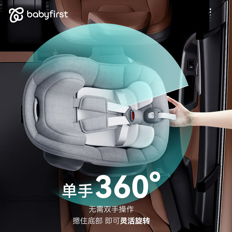 优秀的安全感不止是合格,而是关键指标高于国家及行业标准。单手旋转,无需双手操作,摁住底部即可灵活旋转,朝向车门 90°悬停,轻松放娃。转动把手即可调节躺角,告别双手拉动座椅。研发三位一体连接轴,实现正反向所有档位都能转。内置三角腰垫,承托宝宝腰部曲线。