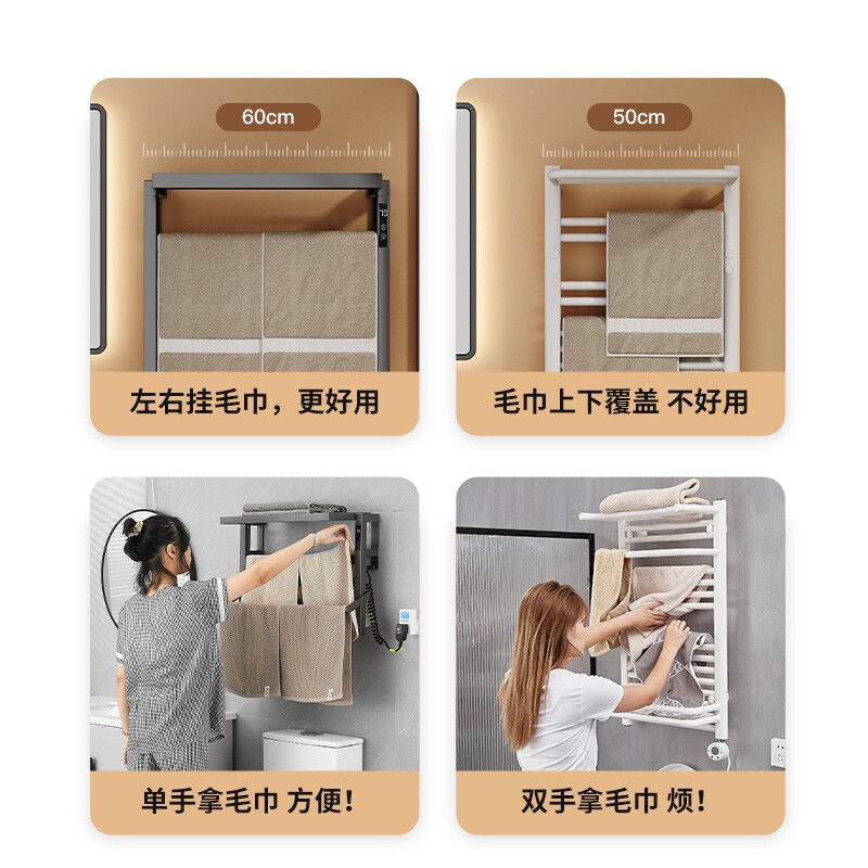 打孔/免打孔安装 承重强不伤墙,不拆不掉耐热防水,多功能置物空间,可折叠收纳,大台面收纳超多物件。可通过手机遥控/定时开关,起床即可使用热毛巾,语音控制只能精灵控制。