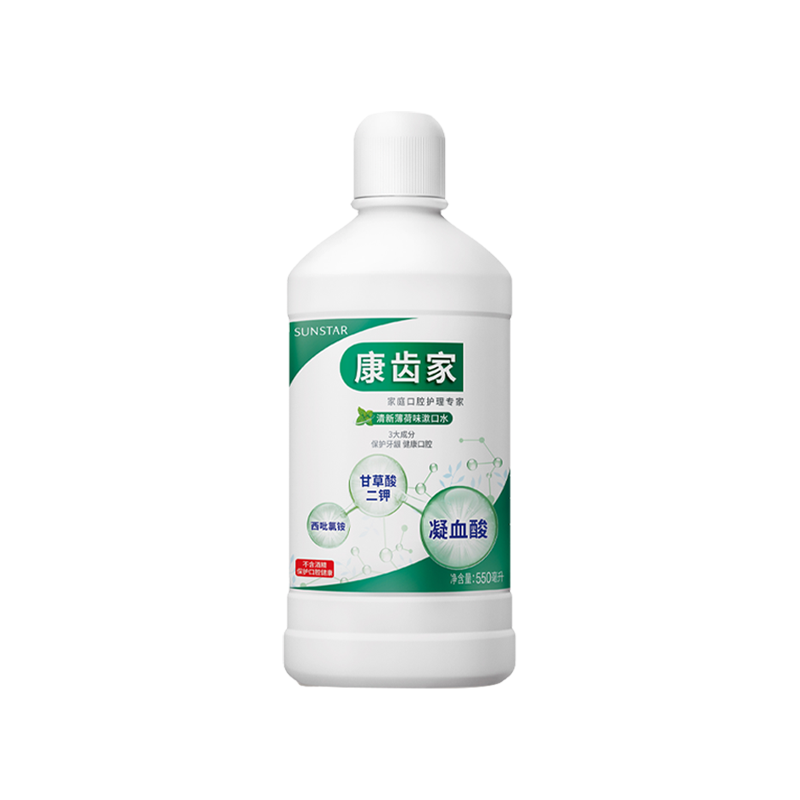 G·U·M推出的这款漱口水,添加西吡氯铵、甘草酸二钾、凝血酸等成分,深层清洁口腔的同时,祛除口腔异味,减少细菌滋生,改善牙龈出血、红肿等问题,帮助舒缓牙周不适,呵护口腔健康。不添加酒精,温和不刺激。可搭配同品牌口腔护理产品使用。