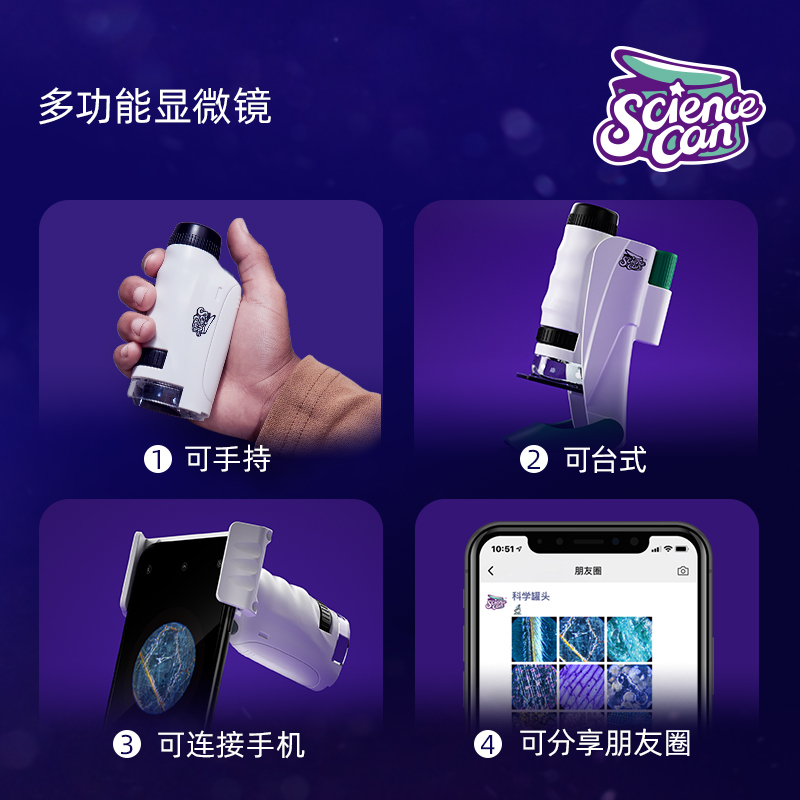 小的显微镜,却能看到一个全新的世界,奇妙微观世界就此开启;小巧轻量,结构紧密,0.01秒快速对焦,透过显微鏡,沙子变宝石,蚂蚁变巨兽,奇妙的微观世界由此开启。