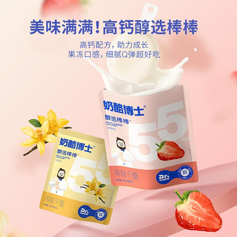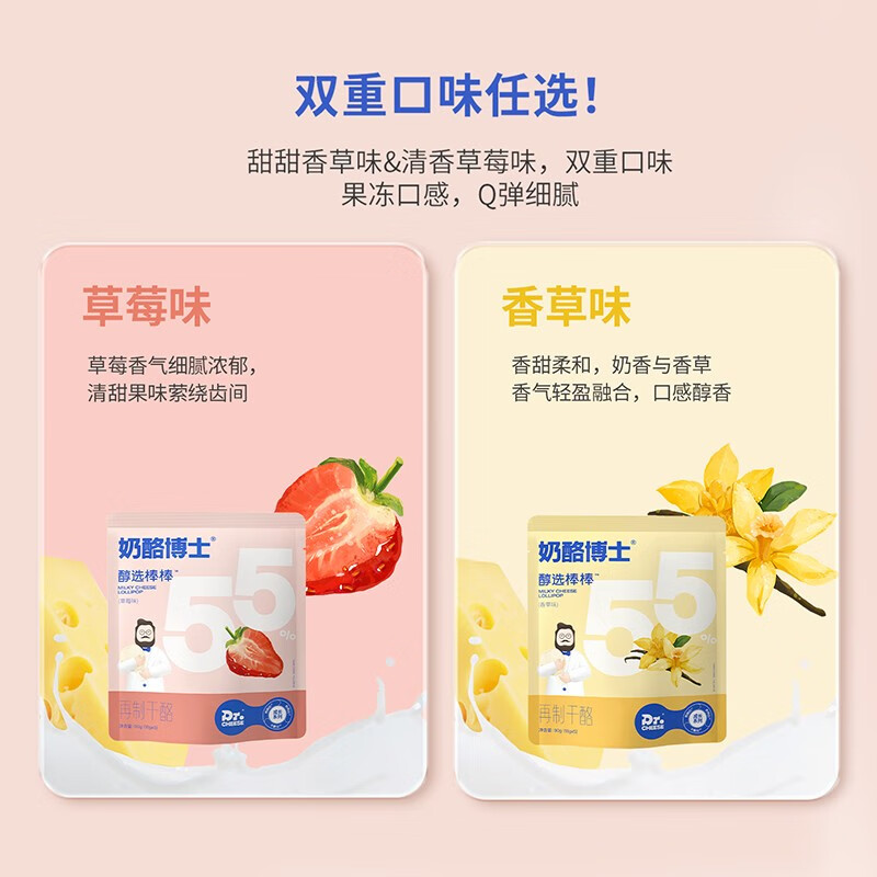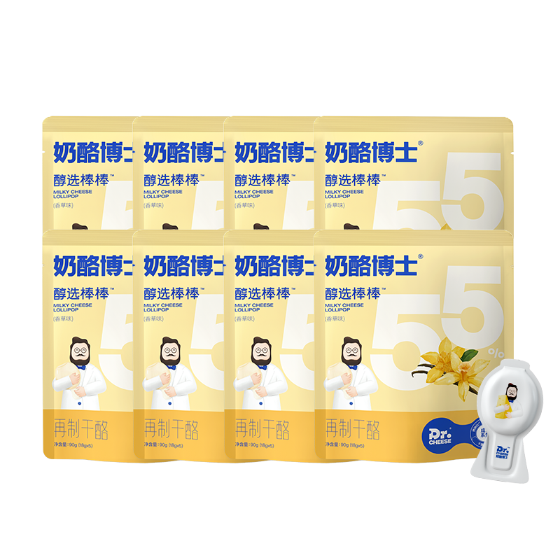 Dr.CHEESE 奶酪博士 儿童奶酪棒,专用配料不加1滴水的高钙系统,阻氧独立小包装,锁住莒养,18g科学控量,方便易储存,更特别添加维生素D,助力宝宝钙吸收,其干酪含量约为国标允许最低干酪含量奶酪棒的3.4倍,营养美味,宝宝爱吃~
