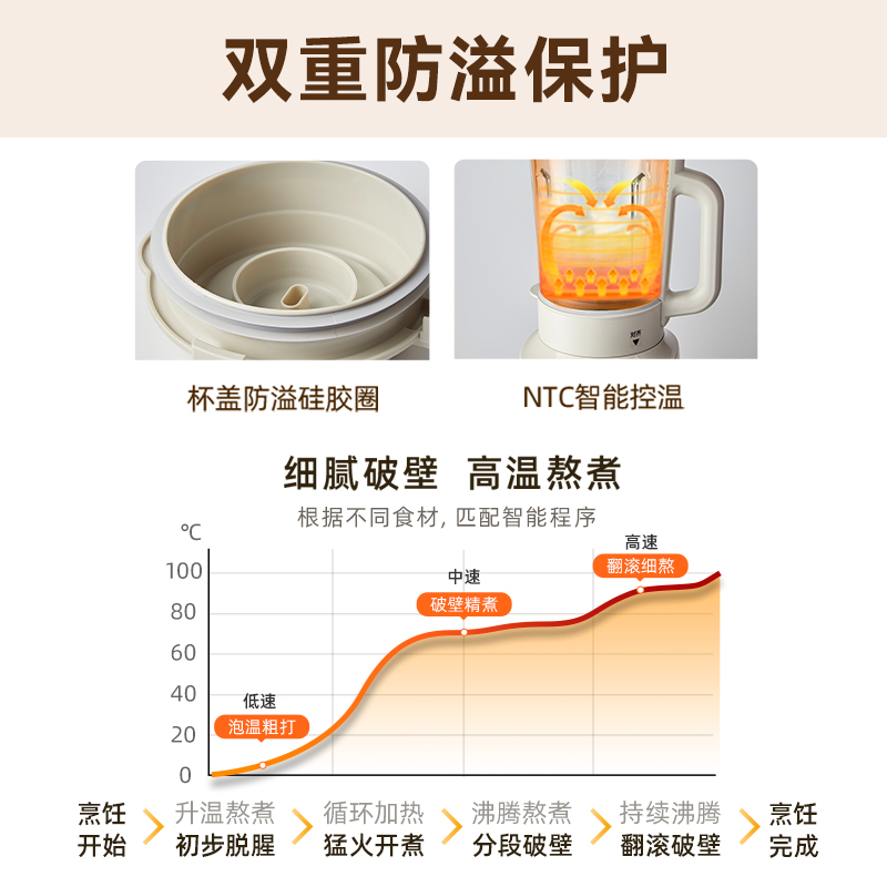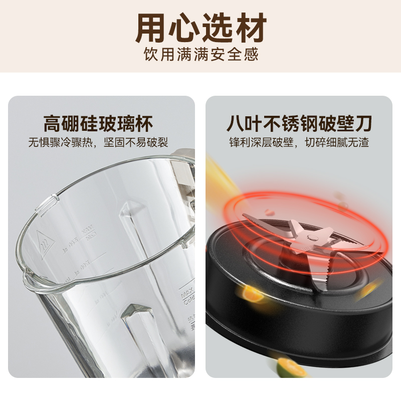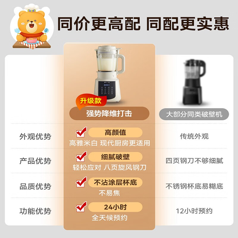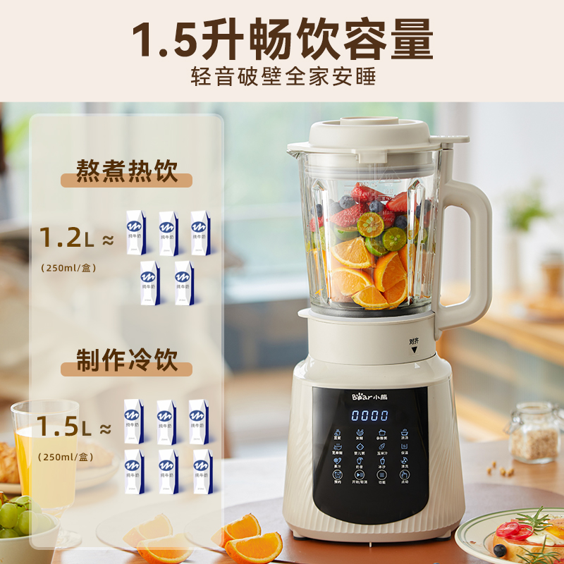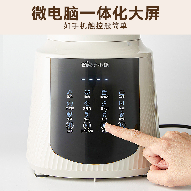 Bear 小熊 PBJ-C16Q8 轻音破壁机家用 1.5升 微电脑一体化大屏 如手机触控般简单,内设智能菜单,轻饮一触即选。