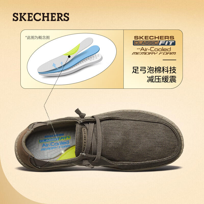 这款SKECHERS 斯凯奇 66387 男士休闲鞋,柔韧网布鞋面,轻质透气。设计上采用classic fit鞋型,更修脚且凸显斯文大方,装饰鞋带提升整体细节层次感。透气记性鞋垫,多功能三层结构,穿着柔软舒适减震,并且具有良好的透气吸湿性能。轻量EVA鞋底,舒适缓震;橡胶加固着力点,加强耐磨性能。
