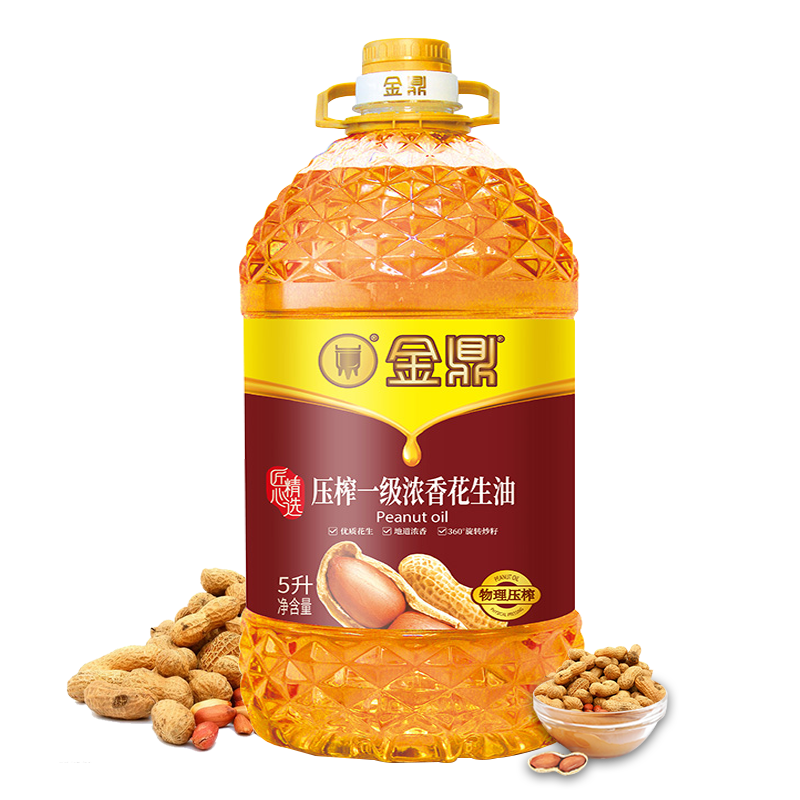 金鼎浓香花生油,精选黄河流域种植的天然花生,采用传统物理压榨经蒸炒工艺,速冷凝香,保留花生原香,营养健康。含不饱和脂肪酸、饱和脂肪酸、氨基酸、蛋白质等营养成分,易于人体消化吸收,满足日常所需营养。规格:5L。