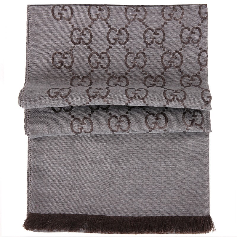 GUCCI品牌一向以高档、豪华、性感而闻名于世,以“身份与财富之象征”品牌形象成为富有上流社会的消费宠儿,一向被商界人士垂青,时尚又不失高雅。这款GUCCI 围巾使用GG图案元素,GG图案作为GUCCI的经典标志有着很高的辨识度,两端流苏边装饰,时尚百搭又休闲,点亮穿搭,出街吸睛神器,哪个潮人没有一条GG围巾呢。面料上选用70%羊毛加30%桑蚕丝,质地柔软,亲肤性好。尺寸:180*45cm。