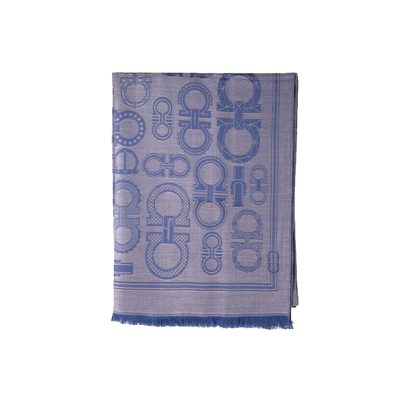 Salvatore Ferragamo 菲拉格慕 男士蓝色围巾 0733345 选用桑蚕丝材质,经典logo装点,尺寸为长180CM、宽70CM。