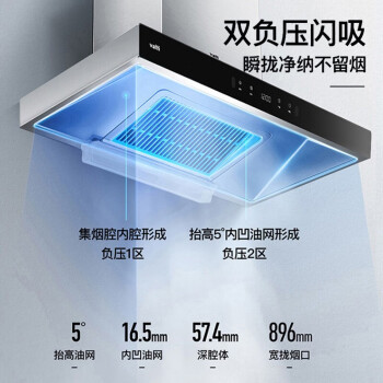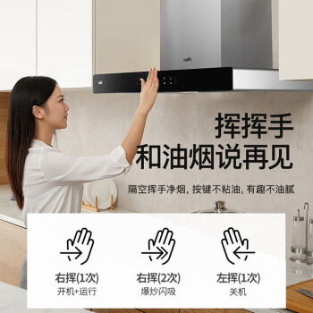 21m3澎湃吸力,3+1档风量调节,40s挥手净烟。
