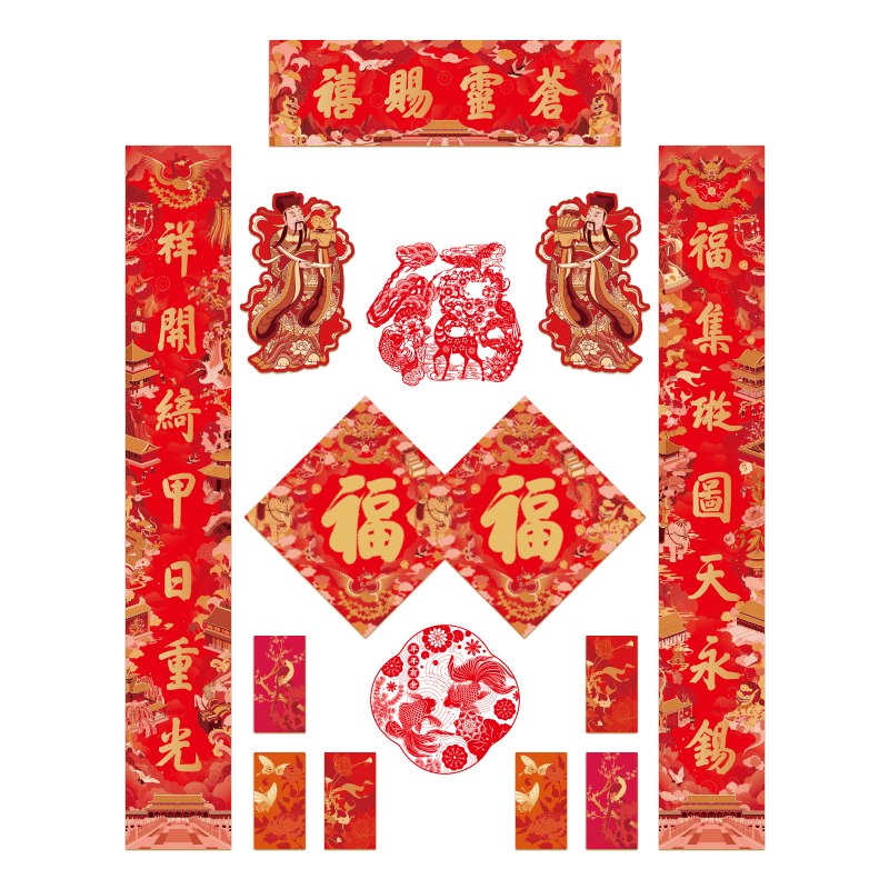春联一副:120cm×18cm(对联) 20cm×66cm(横批)