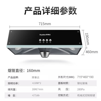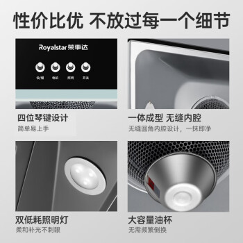 Royalstar 荣事达 CXW-180-G601 顶吸式吸油烟机 深腔拢吸,油烟不外溢,多点一线直吸直排,油烟拢得住,吸得净,排得畅,直吸畅排搭配320Pa大静压,不给油烟逃跑的机会。