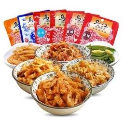天猫售价34.9元,可用10元优惠券,到手只要24.9包邮,额外赠送脆口榨菜22g*5袋。乌江牌榨菜,是重庆市涪陵榨菜集团旗下众多榨菜品牌之一,经典下饭小菜,广告也是家喻户晓,商家宣称经过三洗三榨,反正很下饭就是了。这款清爽榨菜套餐包含碎米榨菜80g*4袋、红油榨菜80g*3袋、微辣榨菜80g*3袋、麻辣萝卜60g*2袋、香辣下饭菜50g*4袋、海带丝70g*2袋,规格:18袋装 约1.23kg。
