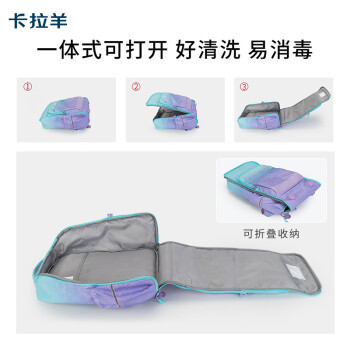 实用新型专利一体式可打开设计清洗方便,容量大拿去书本方便可折叠。升级抑菌里布,有效抑菌,给学生加倍防护,外部面料采用防泼水面料,5点减负设计,合理分解背部的压力。