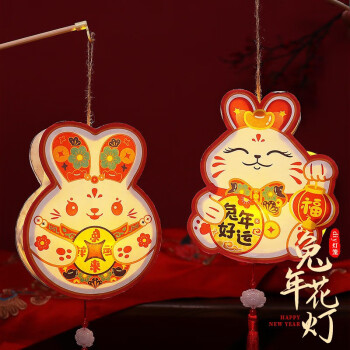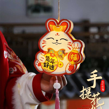 热热闹闹过新年,祝福吉祥提花灯。花灯又名灯笼,是中国传统民俗工艺品,兼具生活与艺术,在新年中提上花灯为节日增添喜庆,祈福平安。各式各样原创卡通兔年花灯,造型可爱有趣,颜色红火喜庆,有纳福兔、如意兔、平安兔、好运兔等等,庆祝佳节来到,送来吉祥美好的祝福。新年花灯除了手提游玩也适合新年装饰,放置在门口、室内、橱窗、台桌等等场景都很合适,装点起来营造兔年喜庆氛围,庆贺新年节日快乐。
