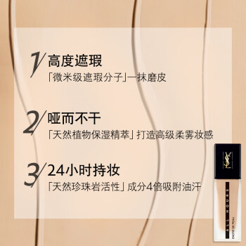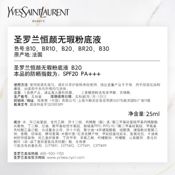 YVES SAINT LAURENT 圣罗兰 恒颜无瑕系列恒颜无瑕粉底液共有5大明星色号,B10象牙色适合自然白皙肤色;B20米白色适合自然偏白肤色;B30自然色适合自然健康肤色;BR10粉白色适合冷调白皙肤色;BR20桃粉色适合冷调偏白肤色。这款粉底液能够遮住肌肤瑕疵、肤色不匀等肌肤问题,夏日防水防汗,保持清透底妆,粉底细腻服帖,不卡粉打造轻透柔焦美肌。
