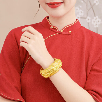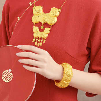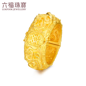 LUKFOOK JEWELLERY 六福珠宝 囍爱足金手镯,经工匠反复,精心抛光,细腻光滑色泽明亮打造闪耀质感,婚嫁可用,双人伴喜造型,预祝喜结连理,足金材质,百搭风格。
