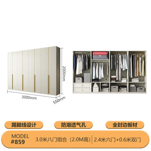 当前的位置: 首页 > 今日值得买 > Z 衣柜现代简约柜子家用卧室储物柜极简轻奢小户型衣橱 3米八门组合丨2米高