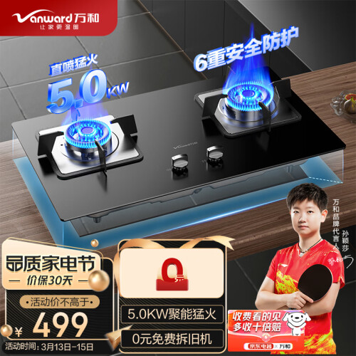 Vanward 万和 JZT-B7L51 嵌入式燃气灶 天然气 5.0KW猛火,6重安全防护,多档火力控制,兼容式底盘,换装免改孔,采用可调节底盘,适用多种开孔尺寸,无需改孔既能给自家换新灶,也能为长辈家换新。