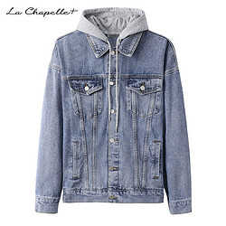 La Chapelle+ 男士牛仔夹克外套,时尚连帽设计,可自由拆卸;时尚翻盖口袋,金属按钮;金属束绳,持久耐磨,收松自如;舒适微弹,穿着舒适。