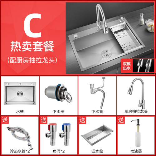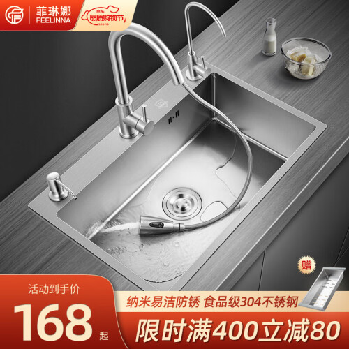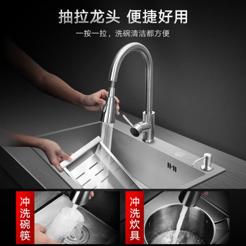 当前的位置: 首页 > 今日值得买 > 菲琳娜 厨房水槽单槽台下盆洗菜盆一体盆 不锈钢洗菜池厨房洗碗槽大单槽 C套餐-配冷热抽拉龙头 75*45CM