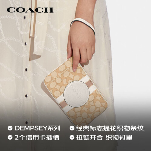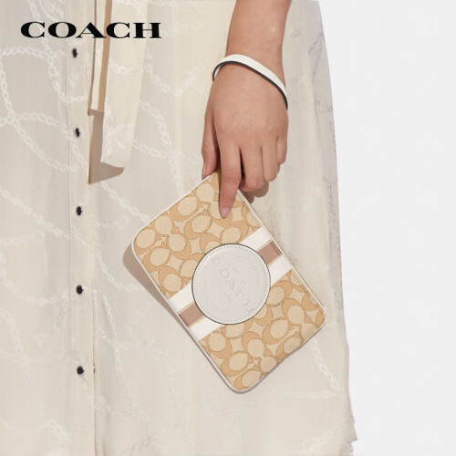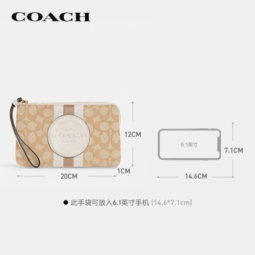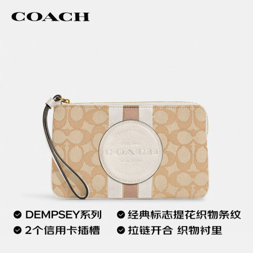 COACH 蔻驰 DEMPSEY系列 女士手拿包 C8841IMDQC 采用织物配皮材质,时尚拼色设计、logo图案装点,尺寸20*1*12cm。