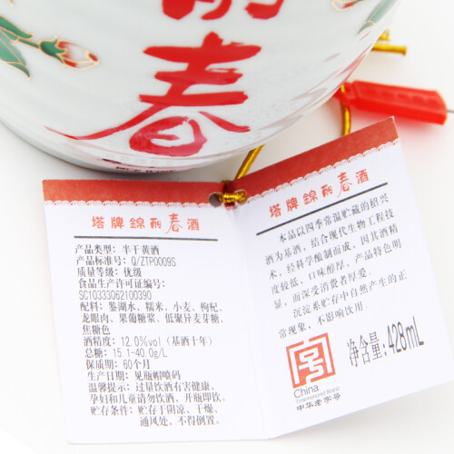 塔牌推出的这款锦丽春特型黄酒,糖含量在15.1-40.0g/L之间。产自浙江绍兴。选用鉴湖水、糯米、小麦、龙眼肉等酿制而成,酒精度为12.0%vol。酒液呈琥珀色泽,芳香馥郁,口感纯正。外观采用白色陶瓷瓶身设计,典雅大气。