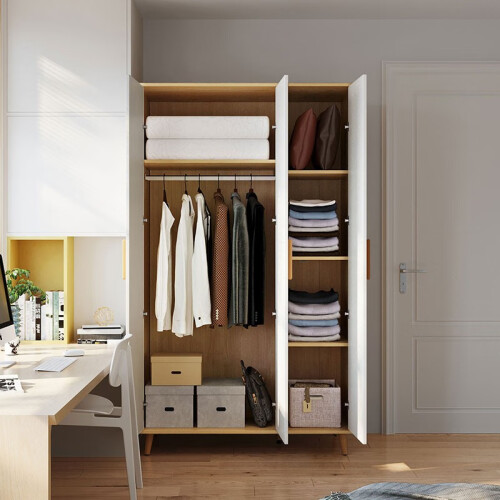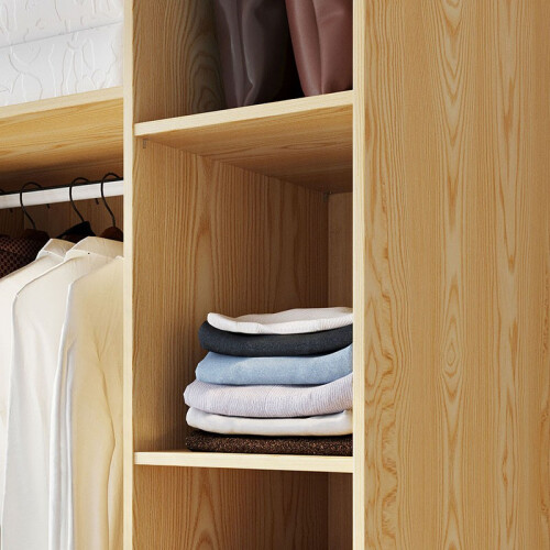 原木色拼白色时尚百搭,烘托卧室柔软温暖氛围。针对小户型空间布局和用户使用习惯,优化内部格局,衣柜更能装。