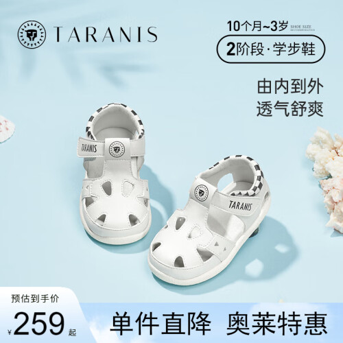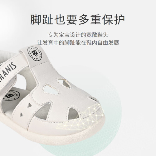 TARANIS 泰兰尼斯 宝宝学步鞋,防止摔跤的自然上翘鞋头,脚趾能够自由伸展,符合脚型设计的宽敝鞋头。柔韧度较好,在宝宝行走时鞋底自然弯曲,不给宝宝的骨头和肌肉增加负担。