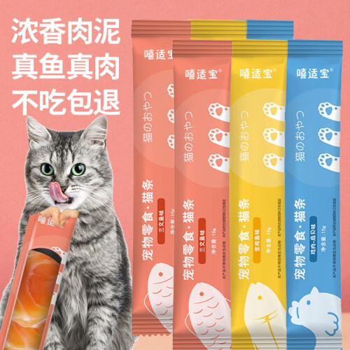 此款猫条0谷物、0色素、0香料、0防腐剂、0诱食剂,口感好,含肉量高,性价比高,多种天然食材组合,让你与爱宠亲密无间。