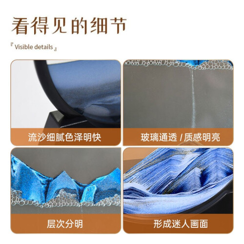 细腻流沙,层次分明。无铅工艺,玻璃相框。摇散气泡,静止10分钟左右,翻转180°后,就可以欣赏流沙下落的迷人画面。