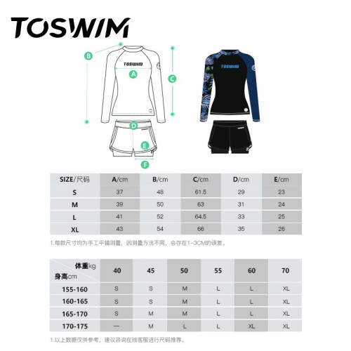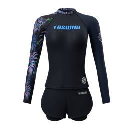 TOSWIM 拓胜 TS811206980 女款长袖分体泳衣,带有泳镜侠紫外线探测器,及时提醒您紫外线强弱,数码印花,亲肤面料,TOSWIN帯给你柔软舒适的体验,百变BRA,TOSWIM可拆卸胸垫设计灵活自如。