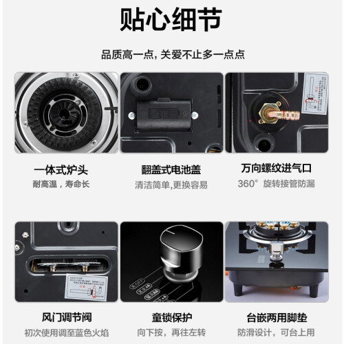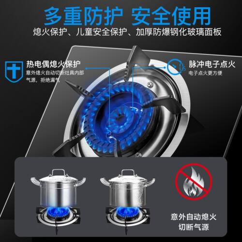 为烹饪注入新灵感,美味随心,为烹饪创造更多可能。用火讲究慢火焖炖,小火慢炖猛火灶也可以这么温柔。熄火保护、儿童安全保护、加厚防爆钢化玻璃面板