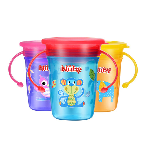 这款儿童学饮杯,360°环饮设计,全方位无死角,吸吮杯口即可饮水。无喷嘴杯口设计,更有助于婴幼儿唇舌和牙齿健康发育,能轻松过渡至使用开口杯喝水。杯口采用硅胶材质,不含BPA,耐拉扯抗氧化,无需担心咬破风险。宽口径瓶口搭配防尘盖设计,方便清洗,干净卫生,外出游玩也可以携带。