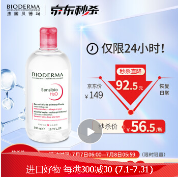 贝德玛(BIODERMA) 卸妆水粉水 舒妍多效洁肤液500ml (清洁舒缓 眼唇脸三合一 保湿修护 敏感肌适用) 进口超市 满99减20优惠券!京东 推荐人: 关耳木易 发布时间:2022-07-07 10:23:32