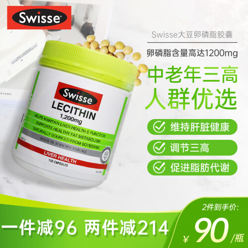 当前的位置: 首页 > 今日值得买 > 澳洲Swisse大豆卵磷脂软胶囊 鱼油胶囊中老年男女辅助降血脂磷脂 【心脑血管健康】大豆卵磷脂胶囊150粒 1瓶